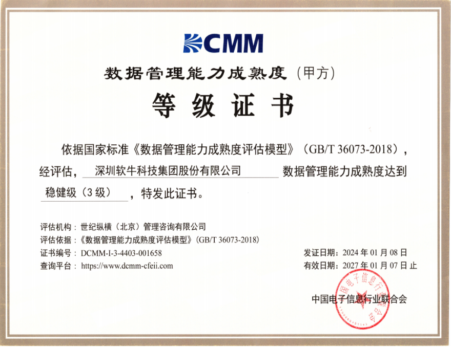 软牛科技集团获评数据管理能力成熟度稳健级资质