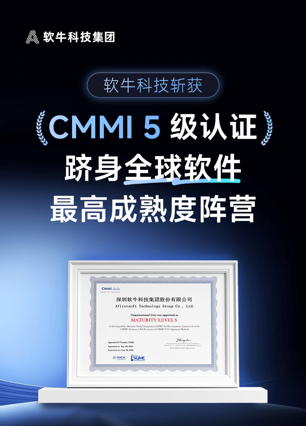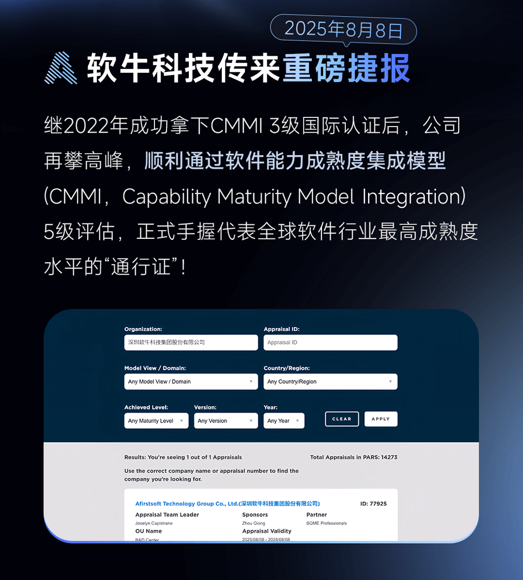 重磅!软牛科技斩获CMMI5级认证,跻身全球软件最高成熟度阵营